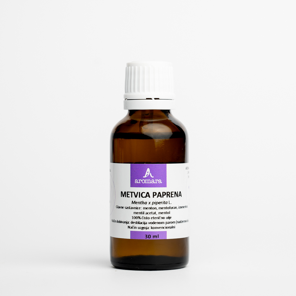 Eterično ulje Paprene metvice jedno je od najprepoznatljivijih i najosvežavajućih ulja, poznato po svom snažnom i čistom mirisu. Dobiva se destilacijom vodenom parom listova i cvetova biljke Mentha piperita, koja je hibrid vodene metvice i nane.