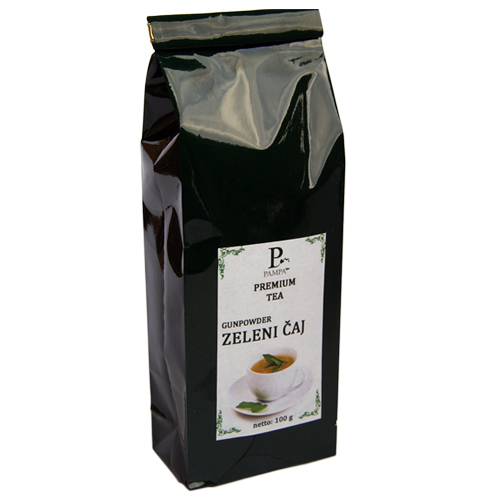 Zeleni čaj Gunpowder (I KLASA ZELENOG ČAJA -PREMIUM TEA) sadrži specifične antioksidanse koji smanjuju razinu toksina u tijelu koje unosimo na dnevnoj bazi. Čaj je dobio ime po kuglicama koje asociraju na puščani prah (Gunpowder). Kuglice se dobivaju tako da se listići skrbno beru i isto tako sortiraju za vrijeme prve berbe. Oni se rolaju u kuglice promjera do tri milimetara. U vodi se kuglice razvijaju u duge, zelene listiće koji se postepeno počnu razmatati i otvarati.